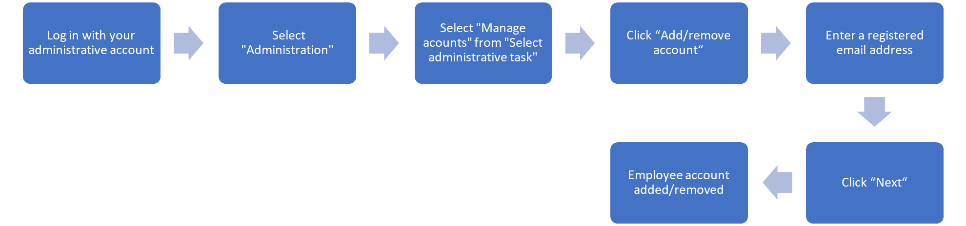 Once your administrative account has been activated, you can assign employee accounts to it by adding registered users using their email addresses.